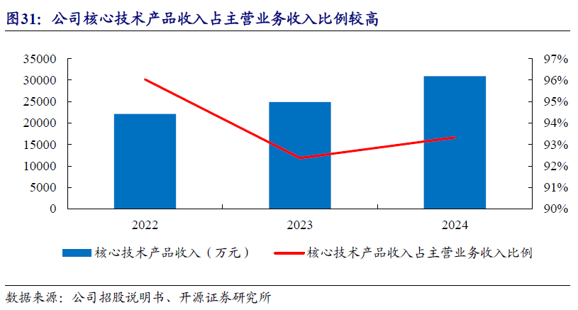 整体来看,公司核心技术产品收入占主营业务收入比例较高。2022-2024年公司新型材料收入分别为 820.01 万元、1,997.02 万元和 2,209.04 万元。