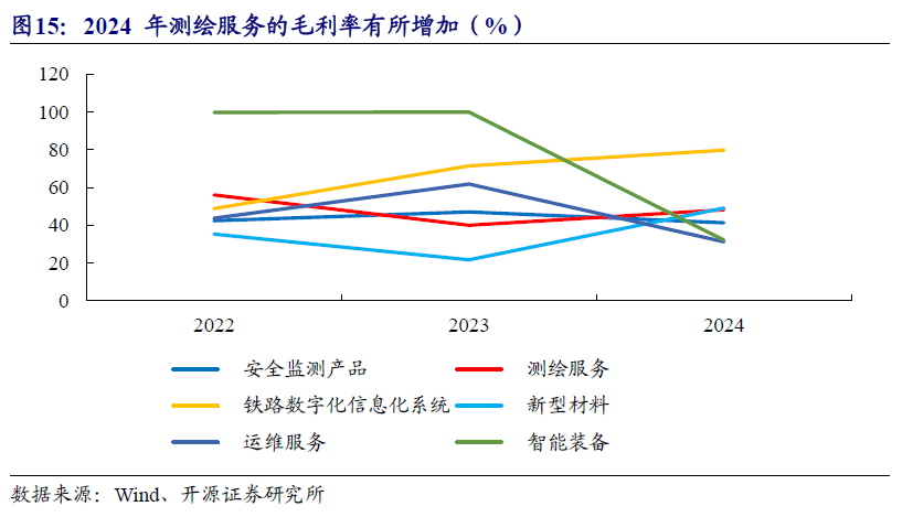 2022-2024年公司的测绘服务毛利率分别为 56.13%、40.06%和 48.27%。2024 年测绘服务的毛利率有所增加,主要是由于公司销售的测绘业务结构变化,2024 年测绘服务中咨询评估、监测检测等毛利率较高的业务销售占比提高,因而相应全年毛利率有所提高。
