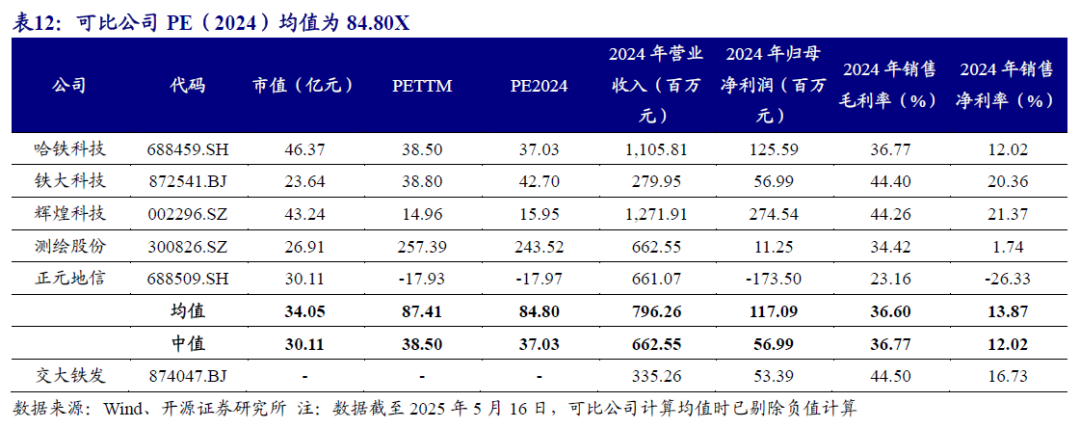根据业务内容、经营情况等因素,我们选取哈铁科技、铁大科技、辉煌科技、测绘股份、正元地信作为可比公司。