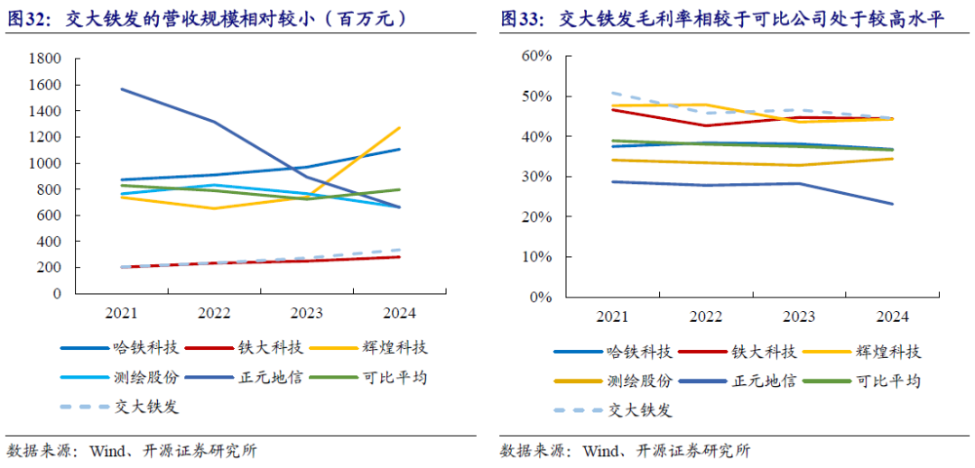 在毛利率方面,公司相较于可比公司处于较高水平。其中一个关键因素是,公司测绘服务的毛利率高于可比公司。可比公司测绘股份、正元地信主要从事地理信息数据工程测绘业务,属于传统测绘业务,同时,客户集中在各地市及县级自然资源局及农业农村部门,相应进入门槛不高,竞争激烈。公司的精测网测量主要客户为铁路系统内的大型国企,例如国铁集团、中国中铁、中国铁建等,并且精测网测量的精度要求极高,需要精确到毫米级,因而对公司的资质要求较高,公司具备工程勘察专业类(工程测量)甲级、测绘甲级资质、CMA 检测资质、ISO9001 三体系证书等,目前符合要求的民营企业较少。