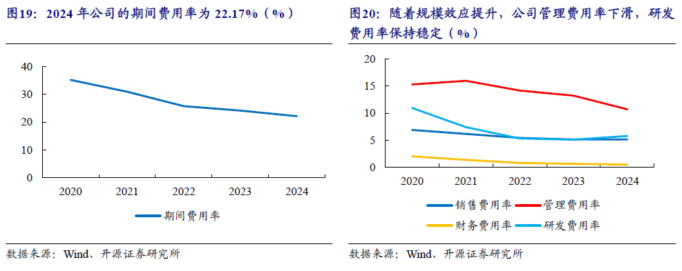 一方面,随着收入规模的增长,公司的销售费用与管理费用率也在逐渐下降。另一方面,2022-2024年,公司研发费用金额分别为 1,255.36 万元、1,399.67 万元和 1,944.20 万元,公司研发费用率分别为 5.33%、5.12%和5.80%,研发费用率稳中有增。