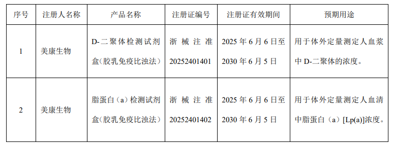 此次获得的注册证包括D-二聚体检测试剂盒和脂蛋白(a)检测试剂盒,具体情况如下: